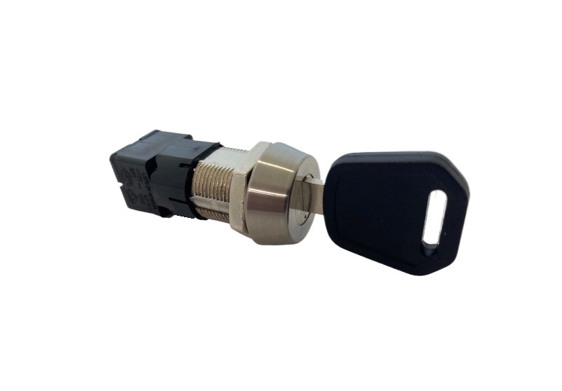 Mains rated high security dimpled key double pole snap fit key lock switch. 2 positions with 90° indexing. Switch module ENEC approved to EN61058-1 by VDE. Same or 250 different dimpled key combinations.